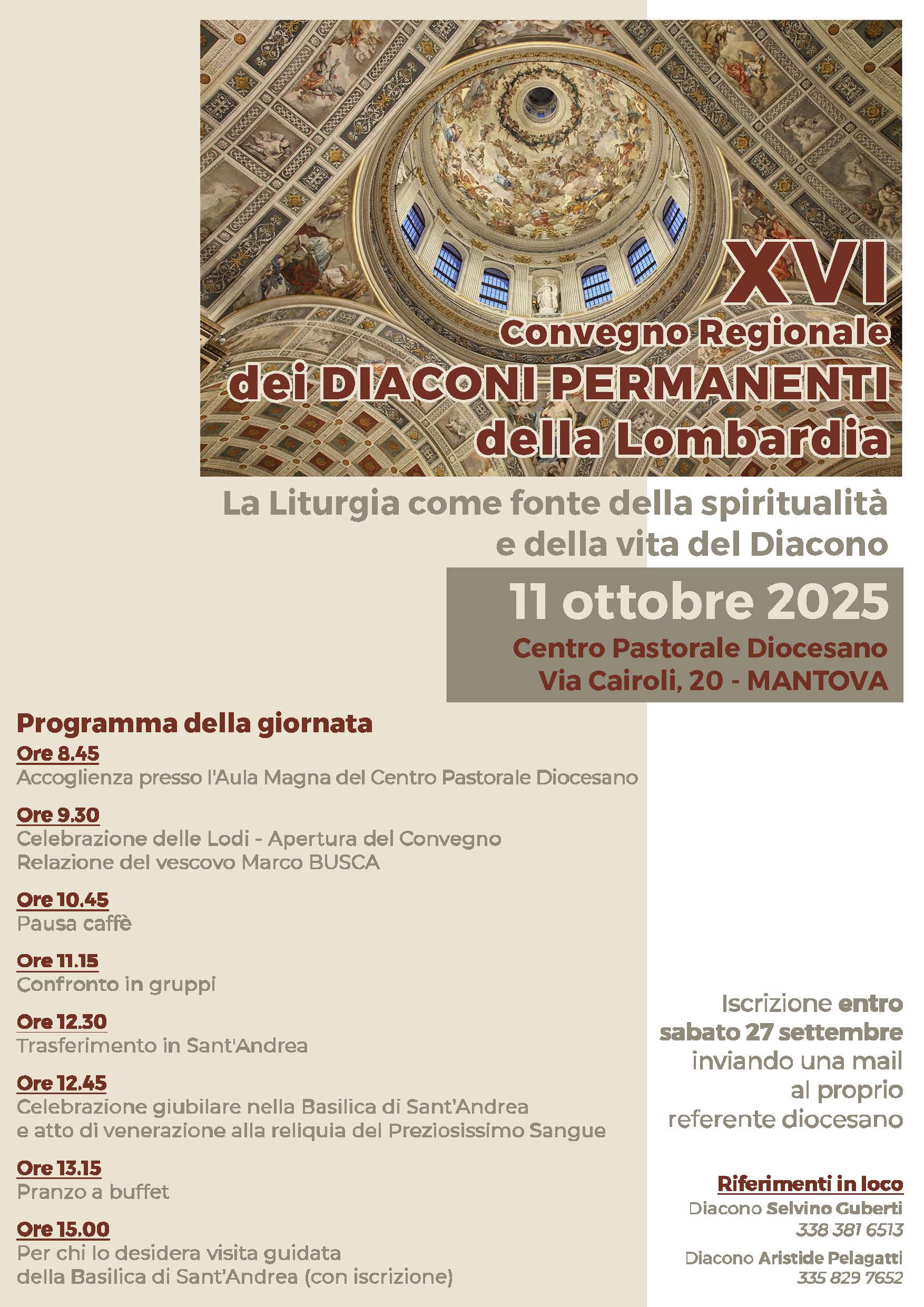 Si svolgerà a Mantova, sabato 11 ottobre 2025, il XVI Convegno Regionale dei Diaconi Permanenti Lombardi.